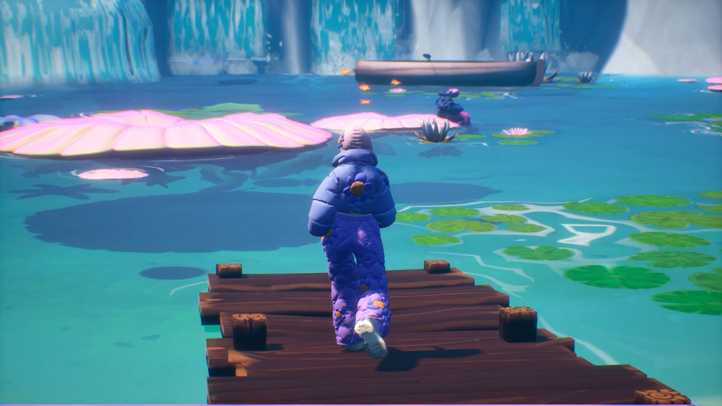 From that realisation came Mbombo: Dream Echoes. I wanted to create a game that begins from a completely different set of values. Instead of acceleration or mastery, it centres rest, care, and imagination. The only way to move through the game is by walking slowly; there are no shortcuts or rewards for efficiency. The deeper you go, the deeper you enter the dream space – rest becomes the method of progress.